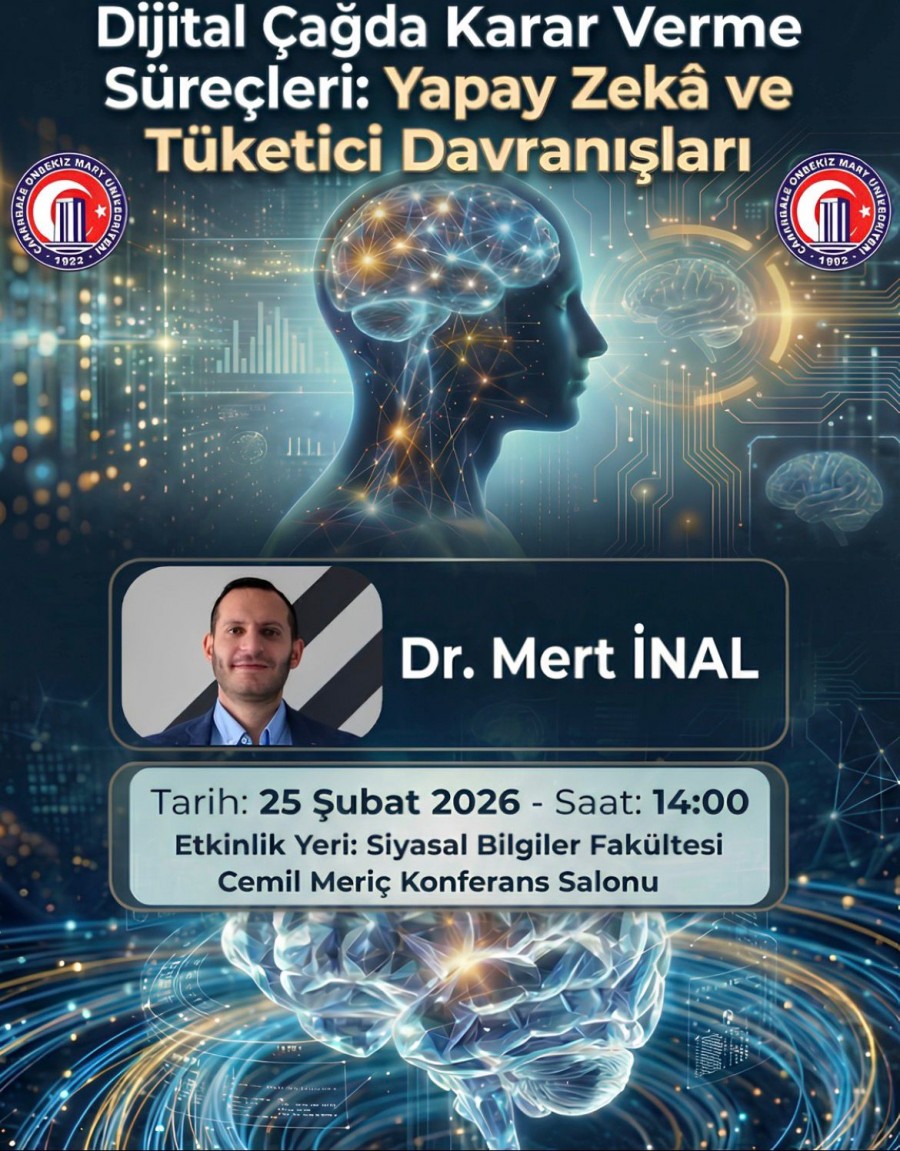Bölümümüz tarafından düzenlenen “Dijital Çağda Karar Verme Süreçleri: Yapay Zeka ve Tüketici Davranışları” başlıklı konferans, dijital dönüşümün karar mekanizmaları üzerindeki etkilerini ve yapay zekâ uygulamalarının tüketici davranışlarını nasıl şekillendirdiğini ele almak üzere gerçekleştirilecektir.