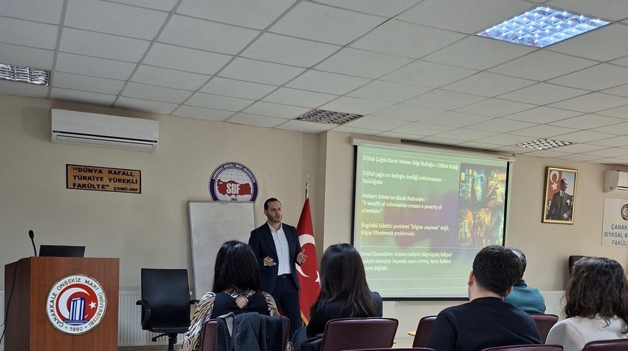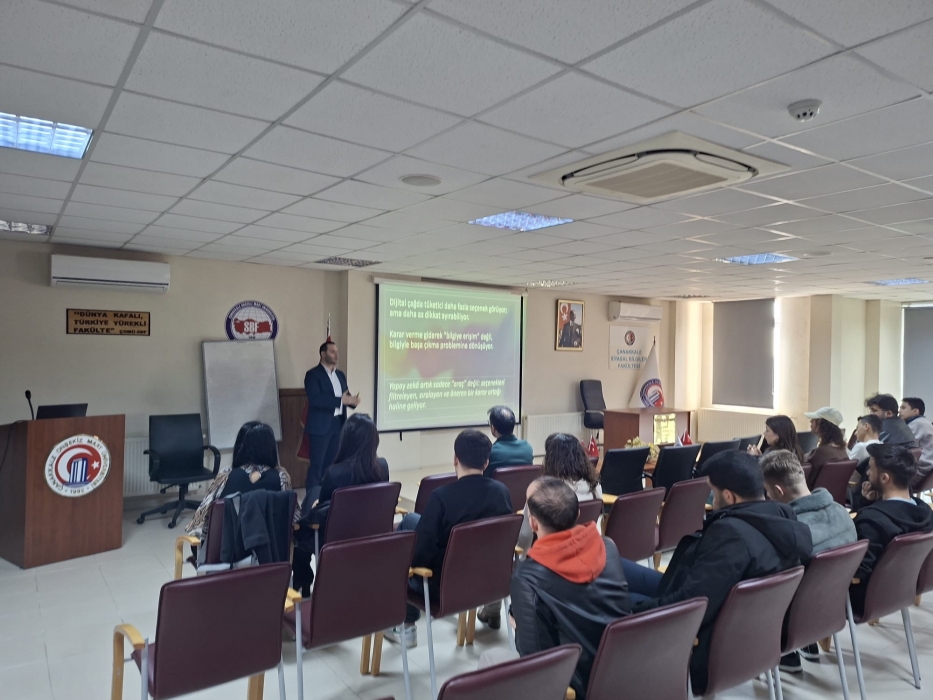 Bölümümüzde tarafından düzenlenen “Dijital Çağda Karar Verme Süreçleri: Yapay Zeka ve Tüketici Davranışları”başlıklı konferans, 25 Şubat 2026 Çarşamba günü saat 14.00’te SBF Cemil Meriç Konferans Salonu’nda yoğun katılımla gerçekleştirildi.
