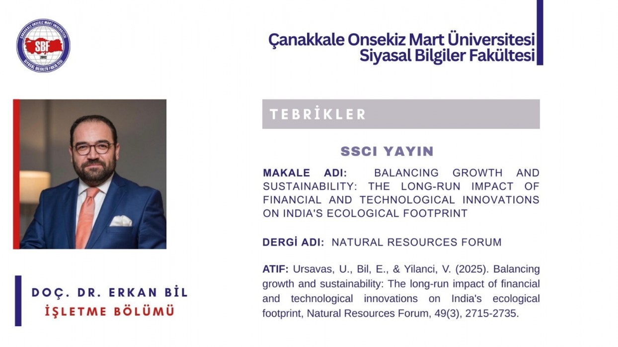 İşletme Bölümü öğretim üyesi Doç. Dr. Erkan Bil’in ortak yazarlı makalesi, SSCI kapsamında taranan Natural Resources Forum dergisinde yayımlanmıştır.